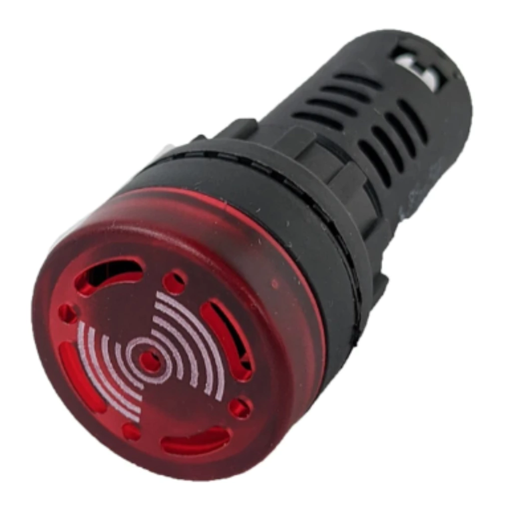 Integra zumbador y LED indicador (versión con luz roja) montable en perforación de 22 mm para tableros